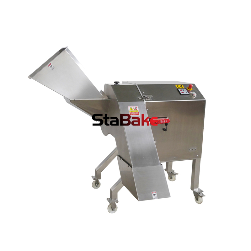 SH-3000 (para cortar frutas y verduras convencionales en dados/tiras/rebanadas onduladas): La carcasa de la máquina está hecha de acero inoxidable 304, con un impulsor de aleación de aluminio y deflectores de aleación de aluminio. Las cuchillas para cortar en cubitos/rayas/rebanadas onduladas están hechas de acero inoxidable, excepto el bloque de corte de aleación de aluminio. La cuchilla para rebanar es SUS440A y las cuchillas para picar y circulares son SUS420J2. El cuerpo es idéntico y los juegos de cuchillas se pueden intercambiar según la configuración. Este El cortador de patatas fritas es adecuado para cortar en cubitos, triturar y rayar verduras y frutas, incluidas zanahorias, cebollas, patatas, piñas, taro, batatas, mangos y manzanas. También es adecuado para cortar en cubitos, desmenuzar y rayar carnes y embutidos congelados a -4°C.