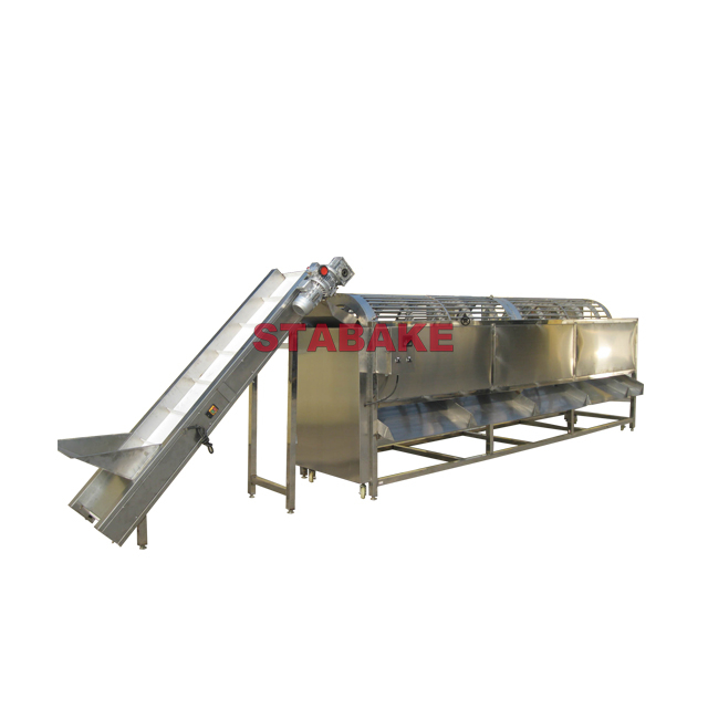 La máquina de clasificación de vegetales utiliza el principio de control de diámetro para clasificar el tamaño de la pequeña fruta/ vegetal. El tamaño del diámetro de fruta pequeña a grande y pequeña más pequeña que el tamaño del espacio puede caer, caer en esta canasta nivelada, más grande que el tamaño del espacio continúa avanzando hasta que cae por debajo del tamaño de la canasta. La fruta se clasificará en un clasificador de diferentes tamaños uno por uno, y no hay daño en la fruta. La máquina tiene la ventaja de una alta velocidad de clasificación, alta eficiencia, ahorro de mano de obra, mejora la eficiencia laboral.